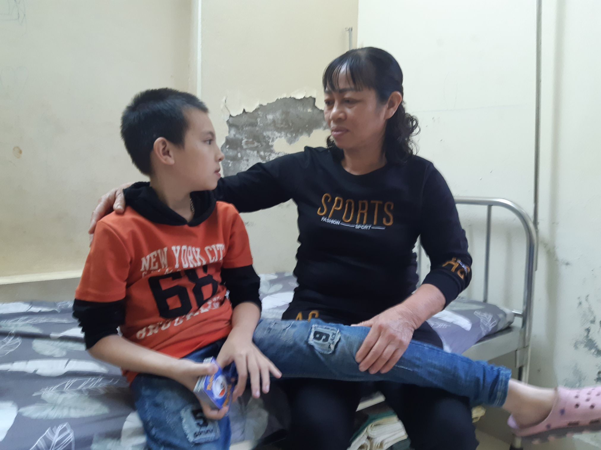 Toan shared, her family is very happy because the children are all good and very affectionate. At night, they often urge me: \"Mom, go to bed or you\'ll be late, I\'ve prepared the bed for you.\" When I don’t feel well, they gather around, ask about my health, or even do me a massage. Nguyen Ba Hai Dang (from Dong Anh district, Hanoi) has Down\'s disease, comfort: \"Get well soon, mom. When I become a doctor, I will treat for you\". That\'s why, every time Toan comes home and they go to the gate to wait for her. A child confided with Toan after coming home that: \"When I am here, I miss my mother at home, but when I came home, I miss you, mom, here\".