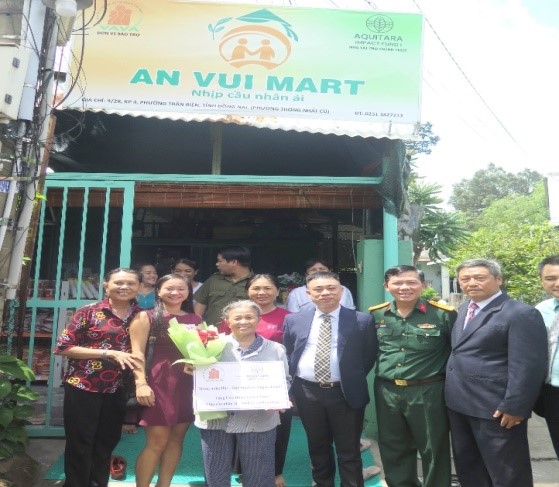 Belgian Ambassador to Vietnam Karl Van Den Bossche; Lieutenant General Nguyen Huu Chinh, President of the Vietnam Association for Victims of Agent Orange/Dioxin; Comrade Le Truong Son, Member of the Standing Committee of the Provincial Party Committee, Vice Chairman of the People's Committee of Dong Nai province; Major General, Associate Professor, Dr. Nguyen Hong Son, Vice President of the Vietnam Association for Victims of Agent Orange/Dioxin, President of the Ho Chi Minh City Association for Victims of Agent Orange/Dioxin attended the meeting and visited 3 "An Vui Mart" stores sponsored by the Aquitara Impact Fund 1 (Kingdom of Belgium), aiming to generate income for the victims, and help their families integrate into the community. Leaders of a number of departments and branches of Dong Nai province also attended the meeting.