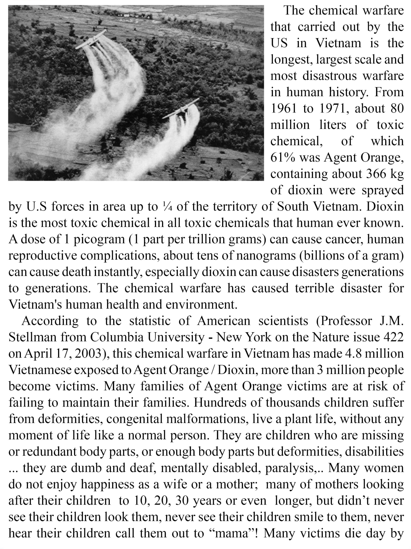 Message Disaster of agent orange in Vietnam