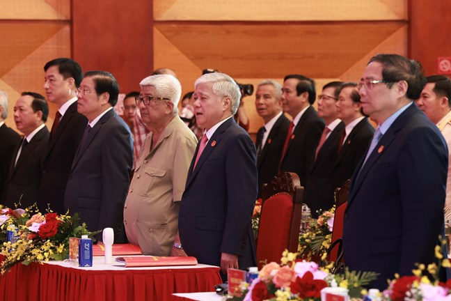 | Tổng Bí thư Tô Lâm cùng các đồng chí lãnh đạo Đảng, Nhà nước tham dự Đại hội |