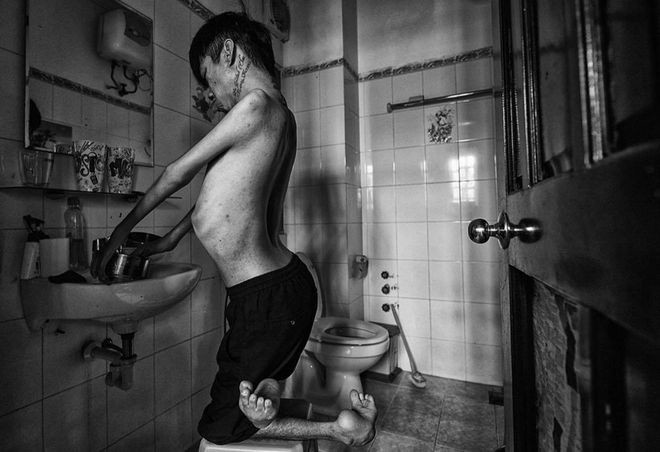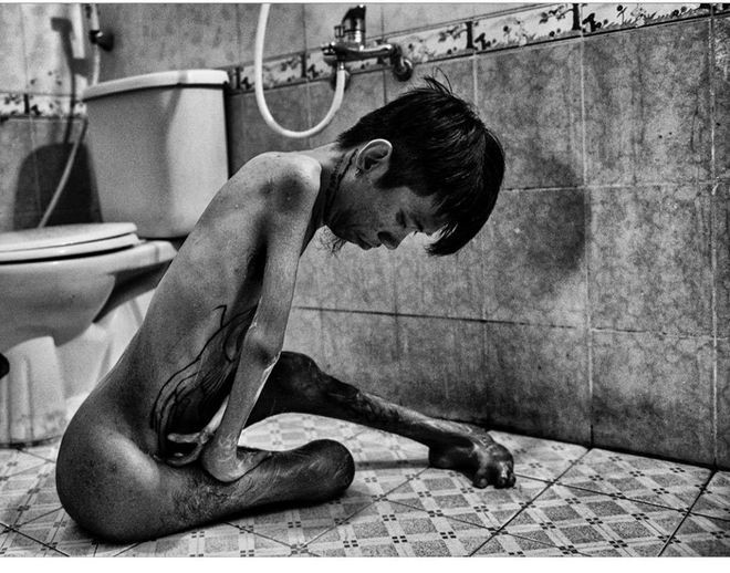 - Photographer Tran Viet Van: Yes, this portrait photo project inspires me the most, more than other projects that I have done. I finished this project in 2019 after many trips to Ho Chi Minh City and Binh Thuan. I have been to a number of children\'s villages to take pictures, and I have taken pictures of several victims of Agent Orange. But Chau is a special person. He has long wished to be an artist, since his time in Hoa Binh Village (Ho Chi Minh City). Despite being disbelieved and sometimes ridiculed, he does not give up his dream. His body is thin, his small, weak hands can’t hold something for long, and his legs could not stretch. Chau\'s knees are full of bruises and covered with wounds because he did not want to travel on a wheelchair for a long time for fear of pitiful gazes.
