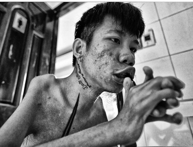 I have talked and lived with Chau many times. It was the time staying late with him that I had impressive portraits of him while he was chatting online with his girlfriend or when looking up with a crane tattoo on his chest. The crane is a symbol of the integrity and nobility of the gentleman.