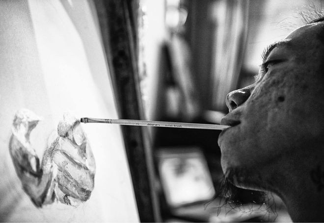 Chau\'s Story Project has been carried out by photographer Tran Viet Van since the end of April 2019 and has yet to stop. With over 30 impressive photos about the life and energy of the painter Le Minh Chau – an Agent Orange victim, this photo project has won awards from Japan, England and Spain, the USA, and been exhibited in Bengal (India) and published on Getinspired (Netherlands) etc.