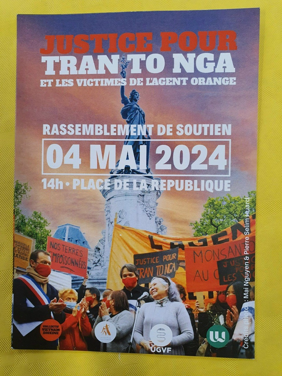Ngày 7/5/2024, Tòa phúc thẩm Paris mở Phiên điều trần vụ kiện của bà Trần Tố Nga. Trước thềm sự kiện này, nhiều tổ chức có thư kêu gọi ủng hộ vụ kiện của bà Trần Tố Nga. Cùng với Thư kêu gọi của Hội NNCĐDC/dioxin Việt Nam còn có thư của Hội Luật gia Dân chủ Quốc tế (IADL), Ủy ban Hòa bình Việt Nam (VPC), Ủy ban Đoàn kết và Hợp tác Á-Phi- Mỹ La-tinh (VAALA), Ủy ban Đoàn kết Indo-Việt Nam… Thư kêu gọi của Hội NNCĐDC/dioxin Việt Nam viết: “Chúng tôi kêu gọi các quốc gia, các chính phủ, các tổ chức và cá nhân hãy cùng hành động tích cực để ủng hộ NNCĐDC Việt Nam; ủng hộ vụ kiện của bà Trần Tố Nga tại Tòa Phúc thẩm Paris… Nỗi đau của NNCĐDC Việt Nam cũng là nỗi đau chung của nhân loại”.