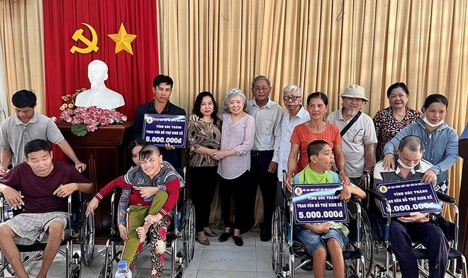 Bà Trần Tố Nga tặng quà cho NNCĐDC huyện Mỹ Tú, tỉnh Sóc Trăng