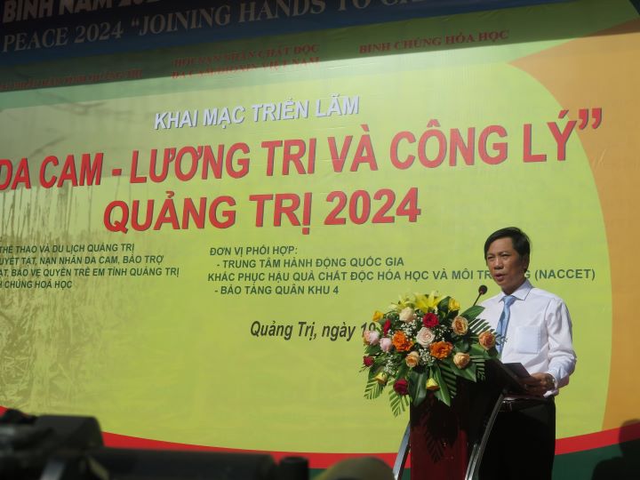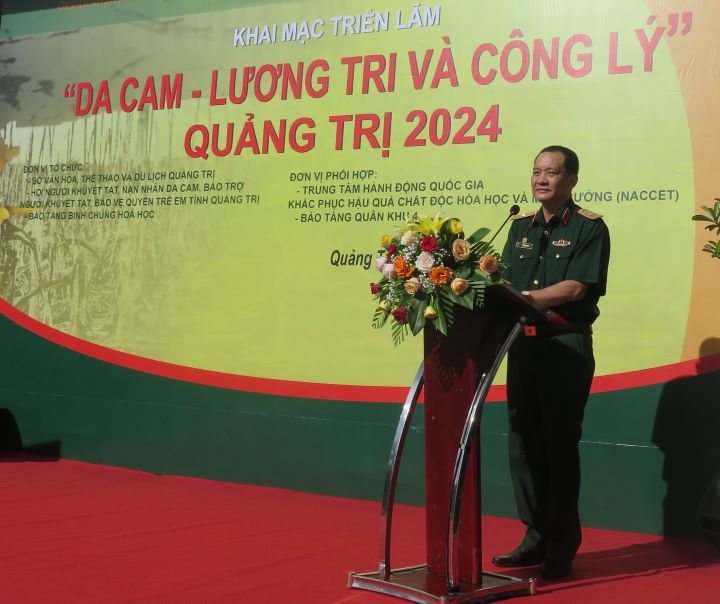 Phát biểu khai mạc triển lãm, Thiếu tướng Đỗ Hồng Lâm và lãnh đạo tỉnh Quảng Trị, Binh chủng Hóa học khẳng định: Triển lãm nhằm tuyên truyền sâu rộng để đồng bào, chiến sỹ cả nước, người Việt Nam ở nước ngoài và bạn bè quốc tế hiểu rõ hơn về hậu quả của chất độc hóa học/dioxin đối với môi trường và sức khỏe con người, nhất là tại tỉnh Quảng Trị - một trong 8 tỉnh bị phun rải nặng chất độc da cam; về những nỗ lực của Đảng, Nhà nước, Quân đội, của Hội NNCĐDC/dioxin Việt Nam, Quân khu 4 và tỉnh Quảng Trị, cùng sự chăm lo của toàn xã hội, sự chung tay góp sức của bạn bè quốc tế trong khắc phục hậu quả chất độc hóa học/dioxin sau chiến tranh và chăm sóc, giúp đỡ nạn nhân. Thông qua triển lãm tiếp tục kêu gọi các tầng lớp nhân dân, kiều bào ta ở nước ngoài và bạn bè quốc tế chung tay xoa dịu nỗi đau da cam, đoàn kết đấu tranh chống phổ biến vũ khí hủy diệt hàng loạt, ủng hộ cuộc đấu tranh đòi công lý cho các NNCĐDC/dioxin Việt Nam…
