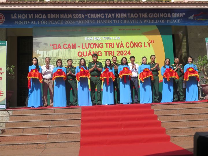 Dự và cắt băng khai mạc triển lãm có các đồng chí: Thiếu tướng, TS Đỗ Hồng Lâm, Phó Chủ tịch thường trực Hội NNCĐDC/dioxin Việt Nam, Trưởng ban Tổ chức triển lãm; Thiếu tướng, PGS, TS, Thầy thuốc Nhân dân Nguyễn Hồng Sơn, Phó Chủ tịch không chuyên trách Hội NNCĐDC/dioxin Việt Nam; Thiếu tướng Trịnh Văn Hùng, Chủ nhiệm Chính trị Quân khu 4; ông Hoàng Nam, Phó chủ tịch UBND tỉnh Quảng Trị; Đại tá Phạm Công Hữu, Phó Chính ủy Binh chủng Hóa học; Thượng tá Trần Đức Hùng, Phó Tổng giám đốc Trung tâm Hành đông quốc gia khắc phục hậu quả chất độc hóa học và môi trường (NACCET), Trưởng Ban Quản lý Dự án Hòa nhập… Tham dự có lãnh đạo các ban, sở, ngành, đoàn thể, lực lượng vũ trang trên địa bàn tỉnh Quảng Trị; đại biểu cựu chiến binh, người khuyết tật, nạn nhân da cam trên địa bàn...