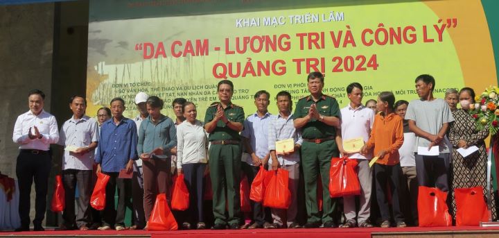Trước khi khai mạc triển lãm, chiều 18/7, Đoàn công tác Trung ương Hội, cùng cán bộ Tỉnh hội và cấp ủy, chính quyền địa phương đã tổ chức khánh thành Nhà tình nghĩa tặng gia đình ông Hồ Văn Thơm, ở thị trấn Lao Bảo, huyện Hướng Hóa, Quảng Trị (Trung ương Hội hỗ trợ 50 triệu đồng, Tỉnh hội Quảng Trị hỗ trợ 10 triệu đồng); trao 16 suất quà (1,2 triệu đồng/suất) tặng các NNCĐDC huyện Hướng Hóa.