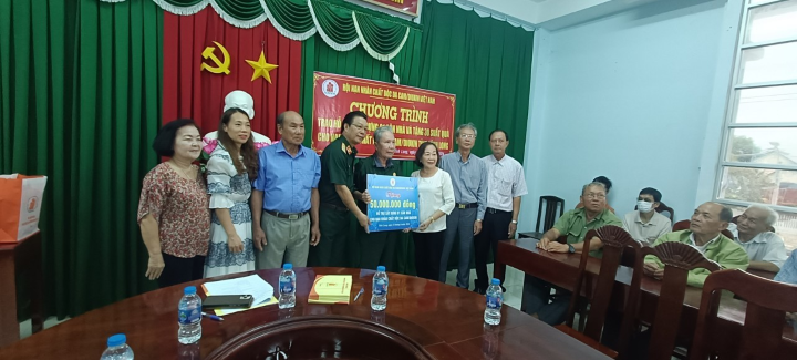 Chiều 25/6, tại nhà văn hóa xã Nhị Long, Trung ương Hội đã tổ chức chương trình hỗ trợ xây nhà và tặng quà cho NNCĐDC các xã Nhị Long, Nhị Long Phú và Phương Thạnh (huyện Càng Long, tỉnh Trà Vinh). Tại đây, Trung ương Hội đã trao tặng 50 triệu đồng hỗ trợ xây nhà cho gia đình NNCĐDC Đinh Văn Dân, ấp Sóc Vinh, xã Phương Thạnh; tặng 30 phần quà cho NNCĐDC ở các xã Nhị Long, Nhị Long Phú và Phương Thạnh, mỗi phần quà trị giá 1,2 triệu đồng, gồm: 01 triệu đồng tiền mặt và quà trị giá 200 nghìn; tổng số tiền là 86 triệu đồng.